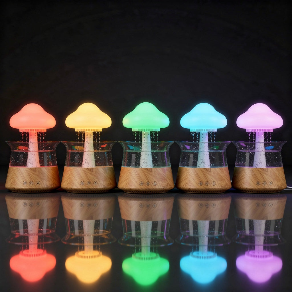 MushRoom combina la humedad que tu piel necesita, el aroma que calma tu mente y la lluvia visual y sonora que apaga el ruido mental. Todo en un objeto que también decora.